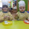 Pues a nuestros duendes les pasó lo mismo… les pusimos el gorro de cocineros y empezamos a elaborar unas deliciosas “gelatinas con sorpresa”. Primero removimos el agua con los sobres de gelatina y ¡qué caritas al ver cómo el agua se convertía en roja y en verde! Después tocaba machacar las palomitas y… ahí llegó el momento. Había más dedos en la boca que en el plato, ¡no daban a basto,….!